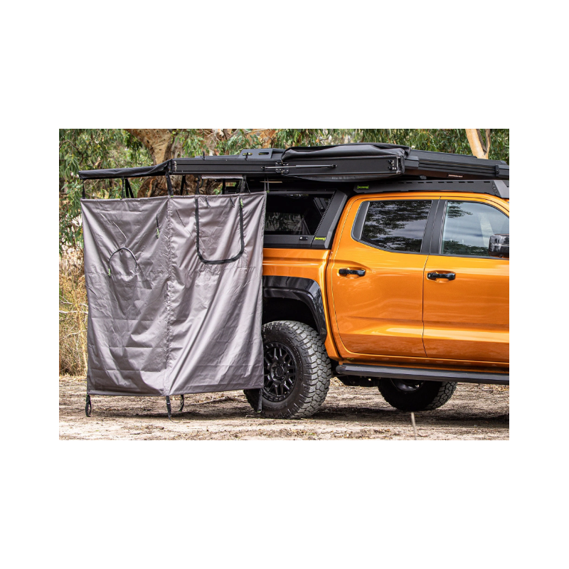 The ability to pivot left or right, allowing greater flexibility in how you wish to set up your vehicle. Installing the pivot left option positions the ensuite to the rear of the vehicle. Four walls with thick ripstop polyester for privacy