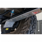 Sats med hasplåtar för bakre stötdämpare, 2 enheter.J120 / J150 / FJ Cruiser / GDJ180 / 4-kanals N210 och N280 Skyddsinformation: Certifierad duraluminium AW5083 H111 i 6 mm. Lämplig för originalstötdämpare, biturbo-stötdämpare och stötdämpare med separat tank. För dess installation krävs TIG-svetspunkter för att svetsa stödet till dragstången.